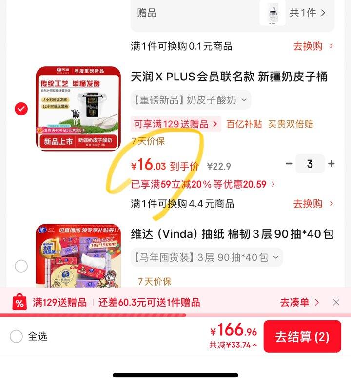 3。天润X PLUS会员联名款 新疆奶皮子桶装酸奶低温风味发酵乳 880g*1