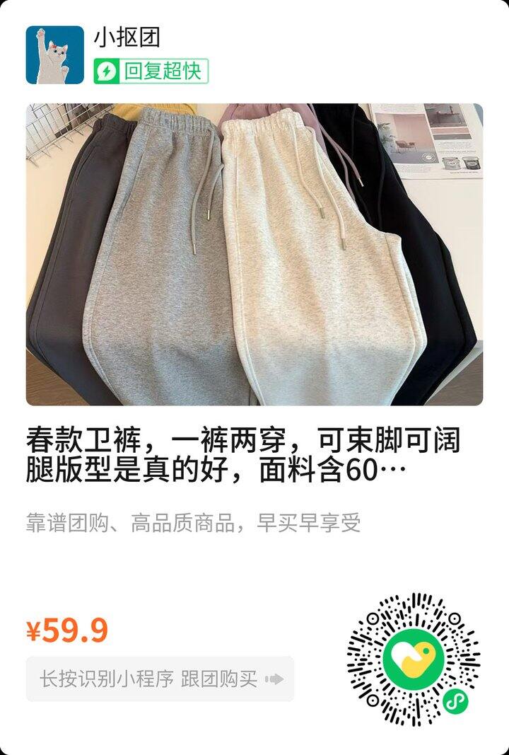 百搭基础款春款卫裤59.9,裤脚可两穿