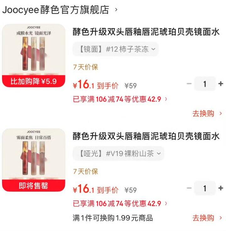 💰16.2/支,酵色双头唇釉