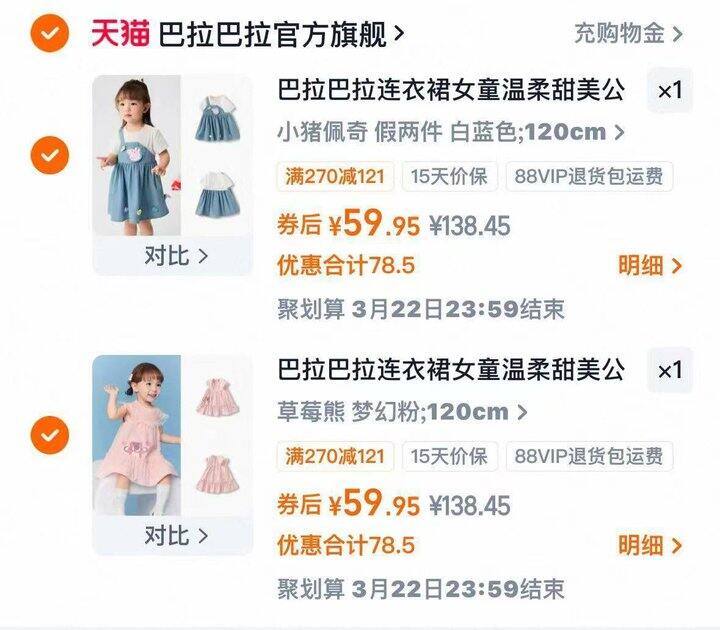 巴拉巴拉公主裙,折59.9/件