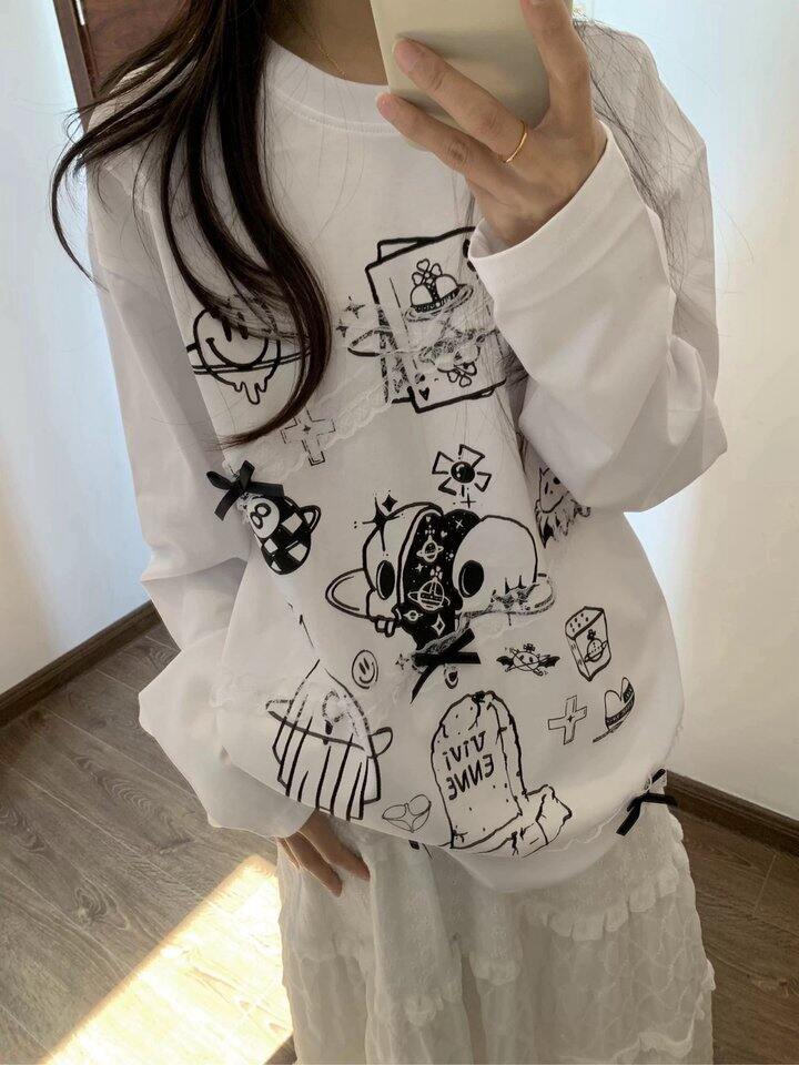 土星小标刺绣➕卡通kt猫印花很有卡通感~配色时髦休闲不挑人,日常好穿!