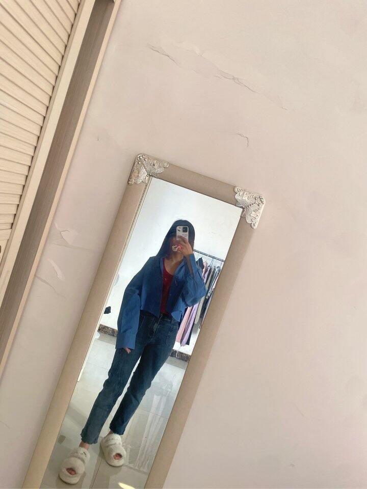 有点色差拍不出来这个蓝色,实物颜色更好看,很有设计感。前短后长,前面还是不规则的