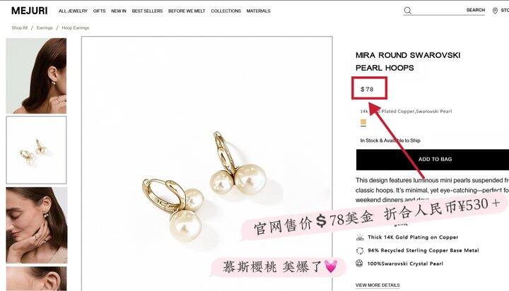 加拿大轻奢牌MEJUR*爆款慕斯樱桃珍珠耳钉!