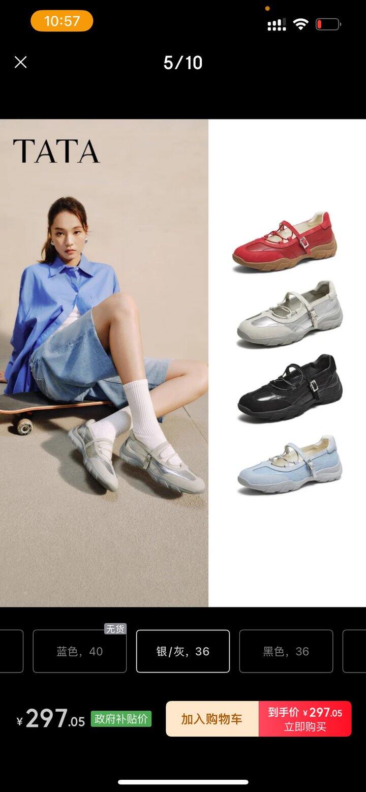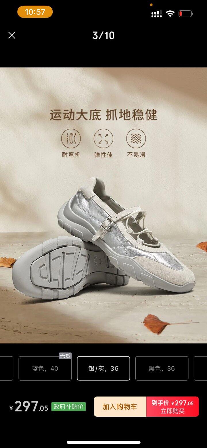 他她TATA女鞋运动玛丽珍鞋秋休闲单鞋百搭真皮 银/灰 36 可换色换码 但是退不了了,买大了,有喜欢的原价出130,凑单凑了好久,有需要的私