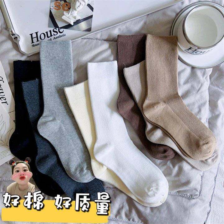 诸暨乐福鞋纯棉简约纯色中筒袜堆堆袜子女女士棕色咖啡色灰色白色