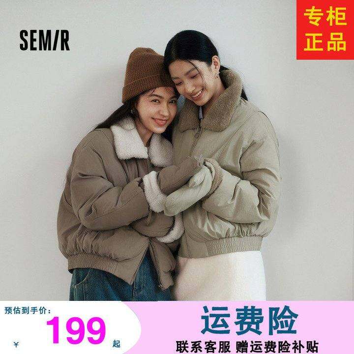 森马棉服女冬毛绒翻领手套宽松分割肌理2025新款时尚复古休闲棉衣