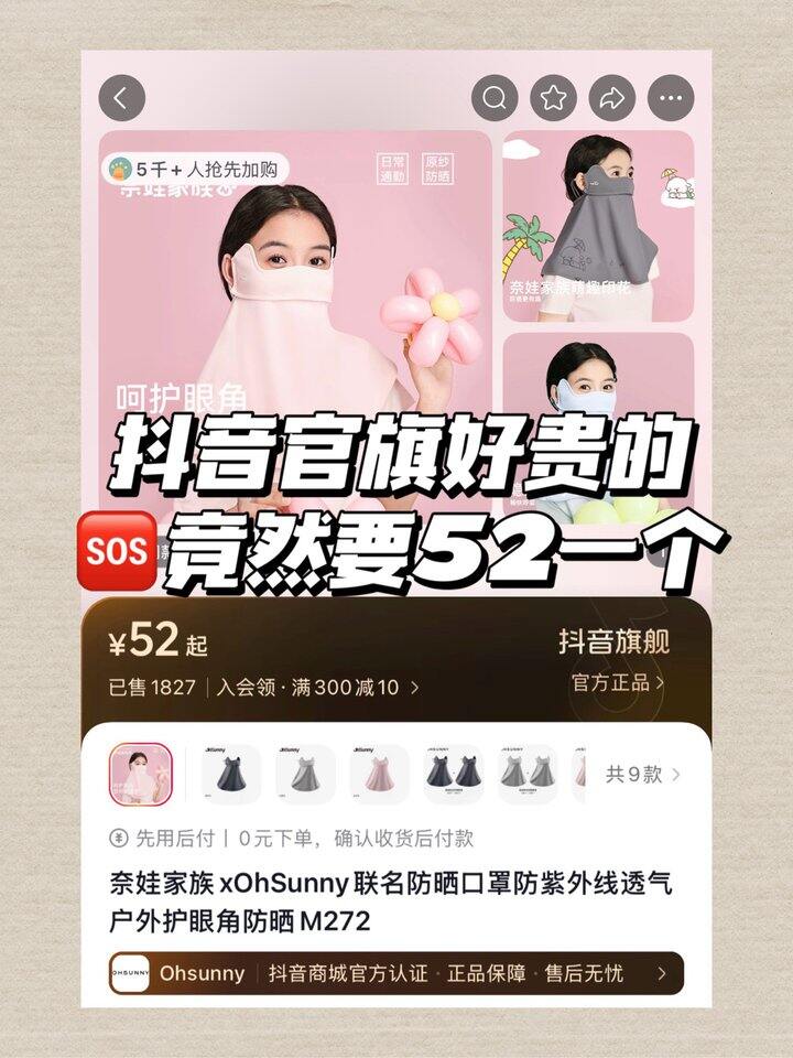 OhSunny联名防晒面罩!💰38