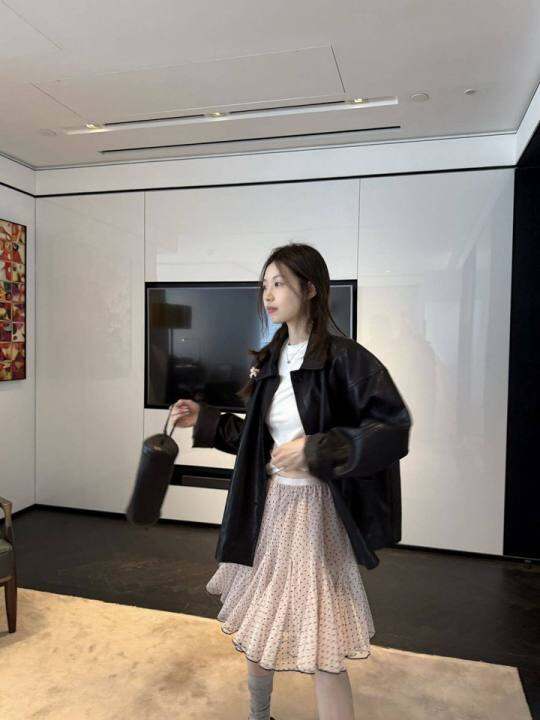 视频中的穿搭感觉这个皮衣没有那么英气,温温柔柔的,还挺好看。实物到手我又觉得它有点宽大,搞不懂这个尺码了。皮衣拿回来有点皱巴,还没有熨烫,值得推荐,可以退换。