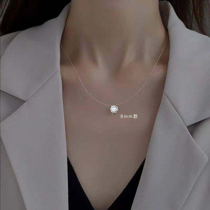 新款推荐 隐形鱼线 线项炼女夏季锁骨炼精美进口钻网红吊坠项炼