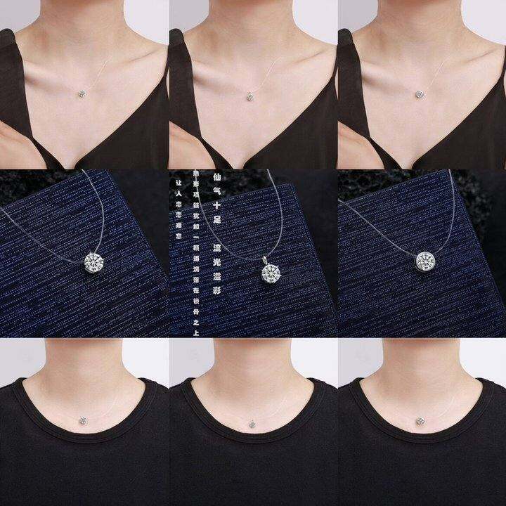 闪亮银饰人鱼之泪隐形项炼925纯银一克拉莫桑钻时尚锁骨颈炼女潮