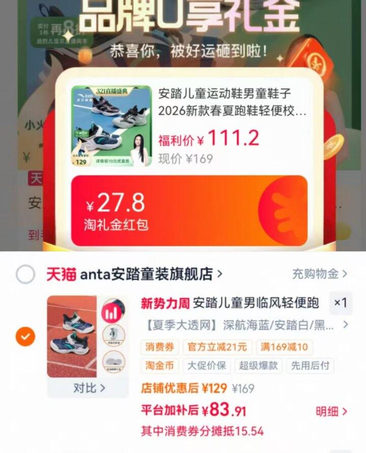 83💰左右到手安踏运动鞋❗️