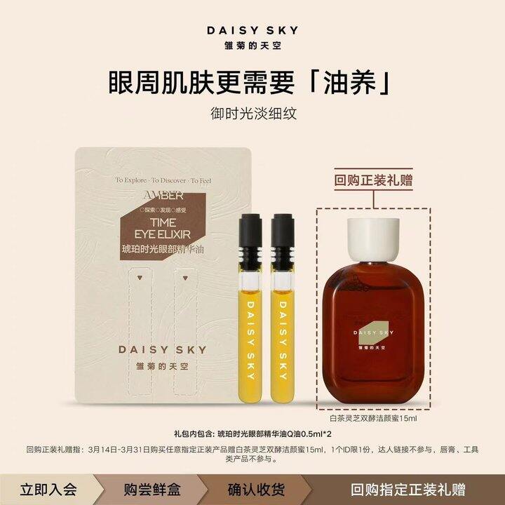🔗: 【淘宝】https://e.tb.cn/h.iRsXFB8An1adKuu?tk=Nnmf51ovaLV CZ057 「【试用抢秒】雏菊的天空琥珀时光眼部精华油Q油0.5ml*2,1个ID1份」