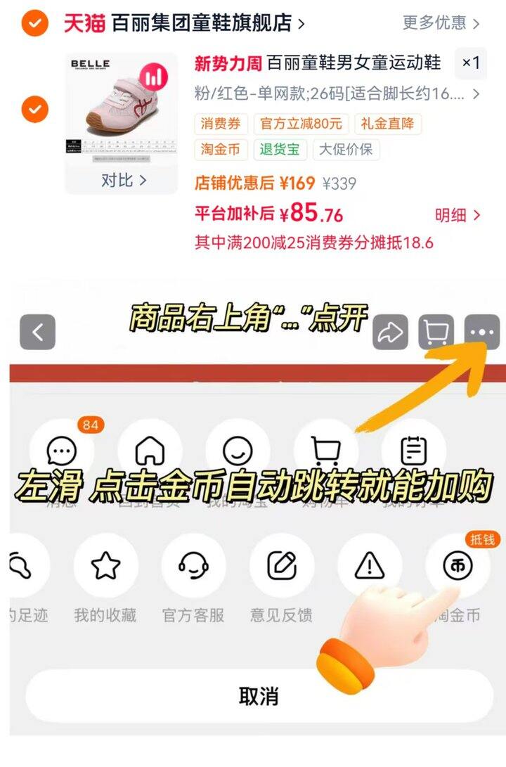 ❷领33.8礼金后叠金币抵11r加购1件