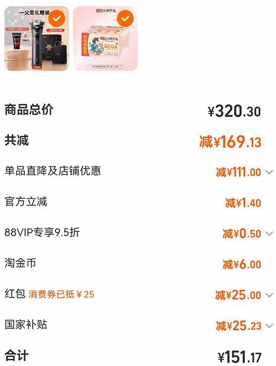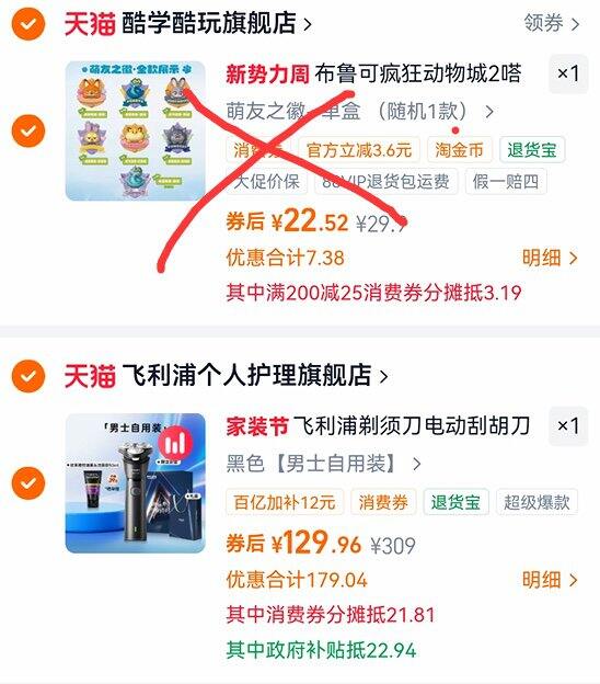 不要管购物车价格,国补要在最终付款的时候才会抵扣,实际花了129左右