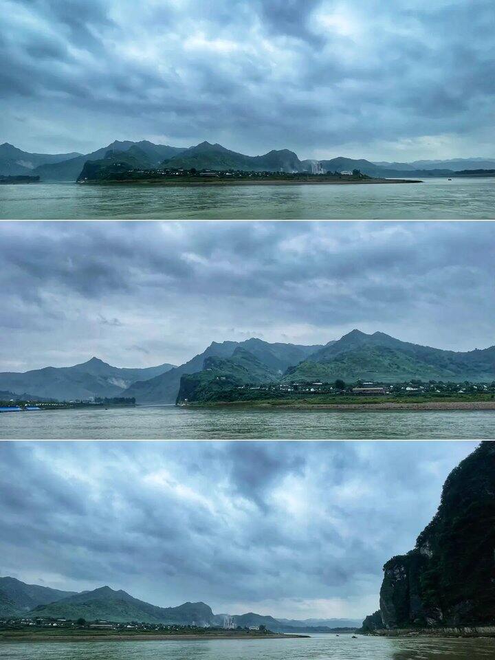 1、羊鱼石风景区,是当地人推荐的鸭绿江漂流点,可惜雨天只能匆匆拍照,对岸是朝鲜车哥坪水泥厂厂区、生活区。