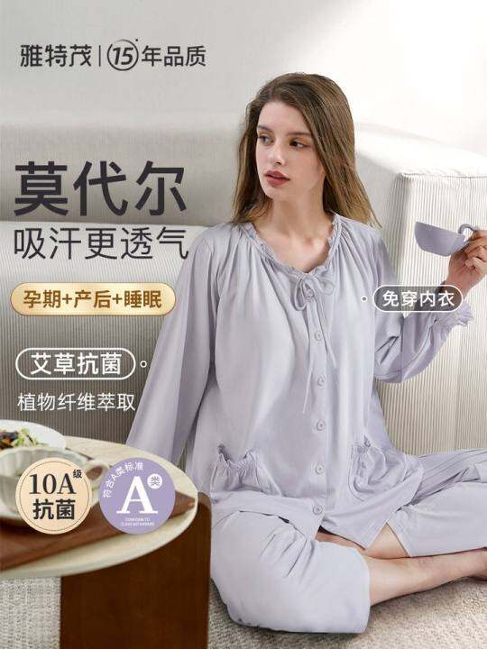 [透气莫代尔!送胸垫]秋季孕妇睡产后喂奶怀孕哺乳衣家居服套装