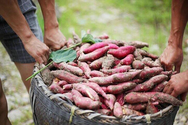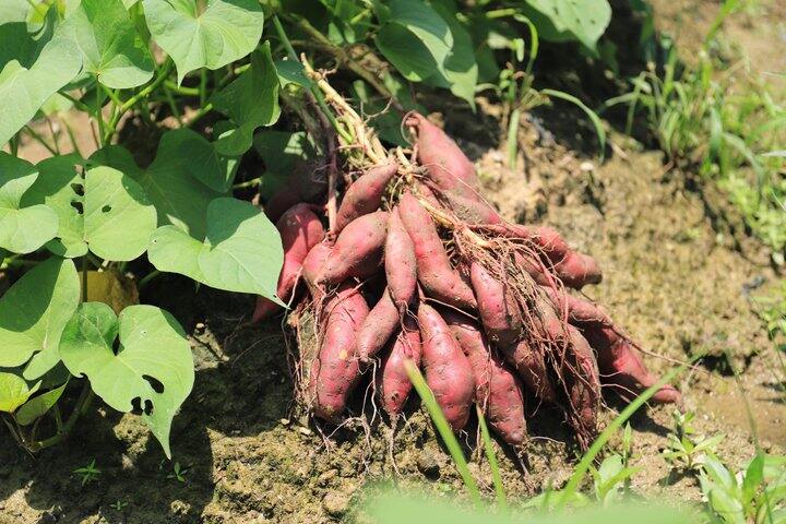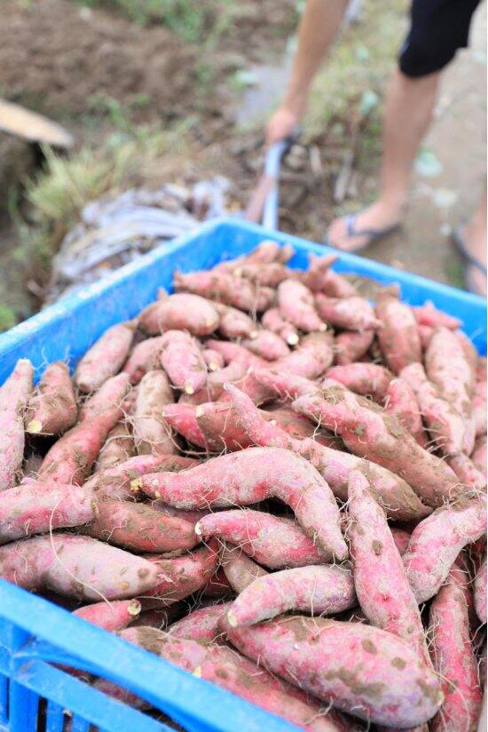 天目山的碱性富硒泥土非常适合小香薯生长结合农家肥所以长出来个头小、粉糯甜依靠传统种植方式黄牛犁地手工播种,锄头采挖~