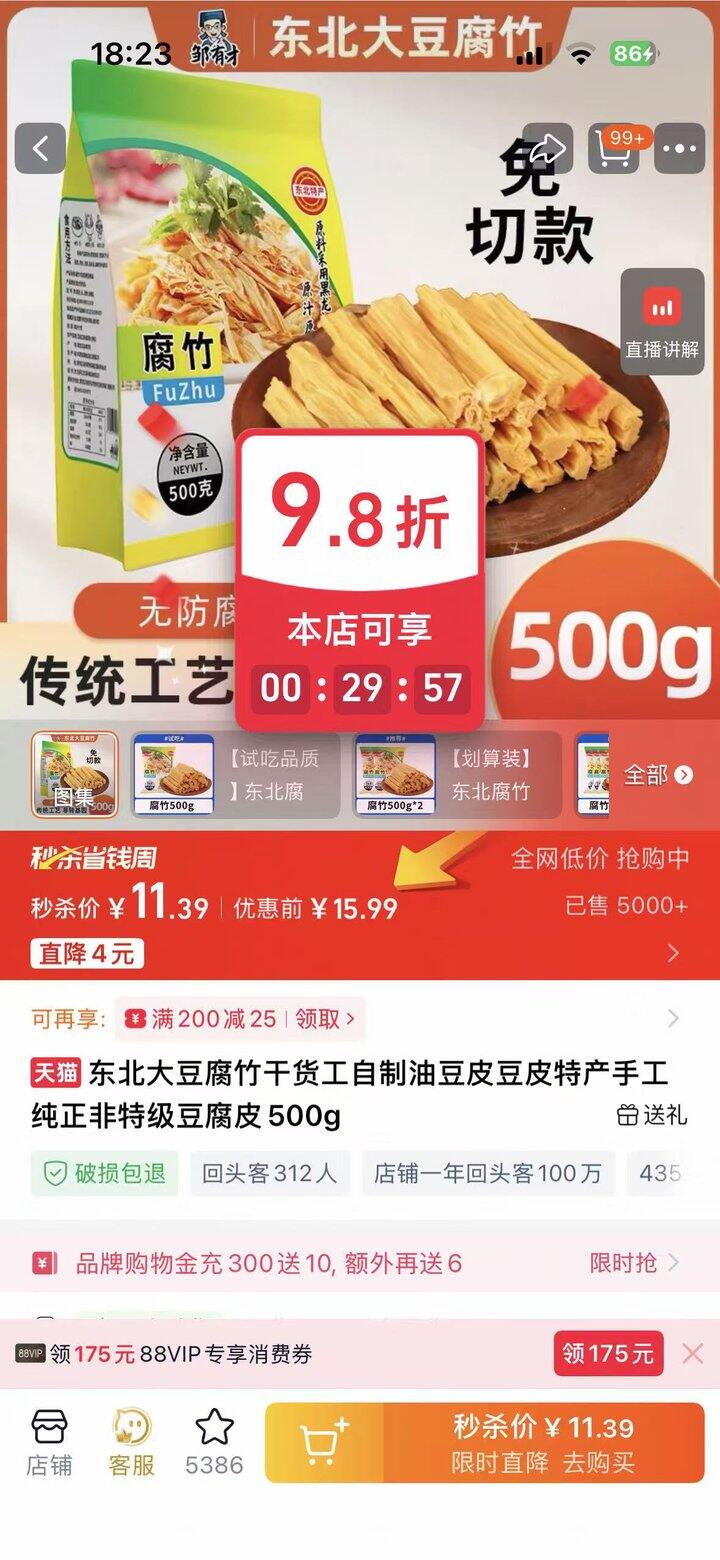 6.99💰邹有才东北腐竹500g*1袋