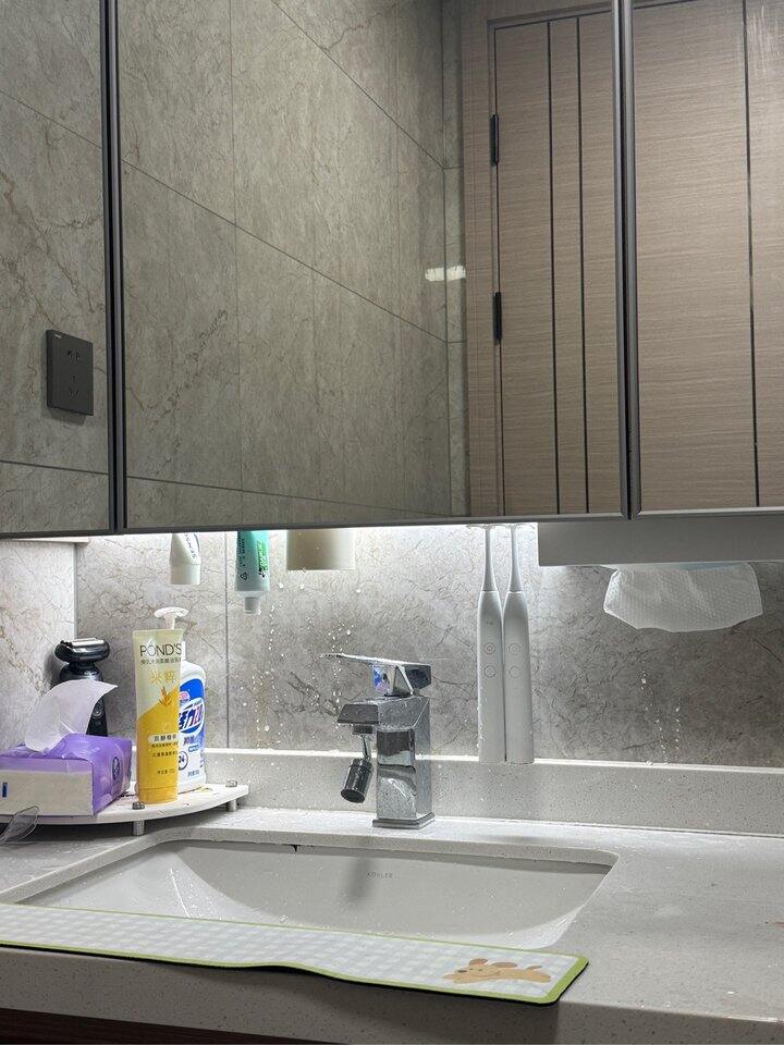 镜柜底下贴了磁吸瞬间台面都干净了
