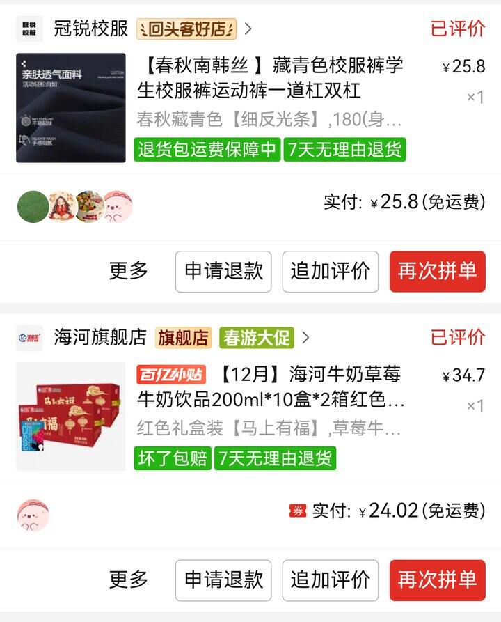 校裤学校40一条,这个才二十几,材质不大一样,外观不仔细看看不出差别。小孩长身体的时候,裤子很快就短了,准备再买两条备着。海河的草莓牛奶我儿子真爱,经常买,这个太便宜了,一盒1.2