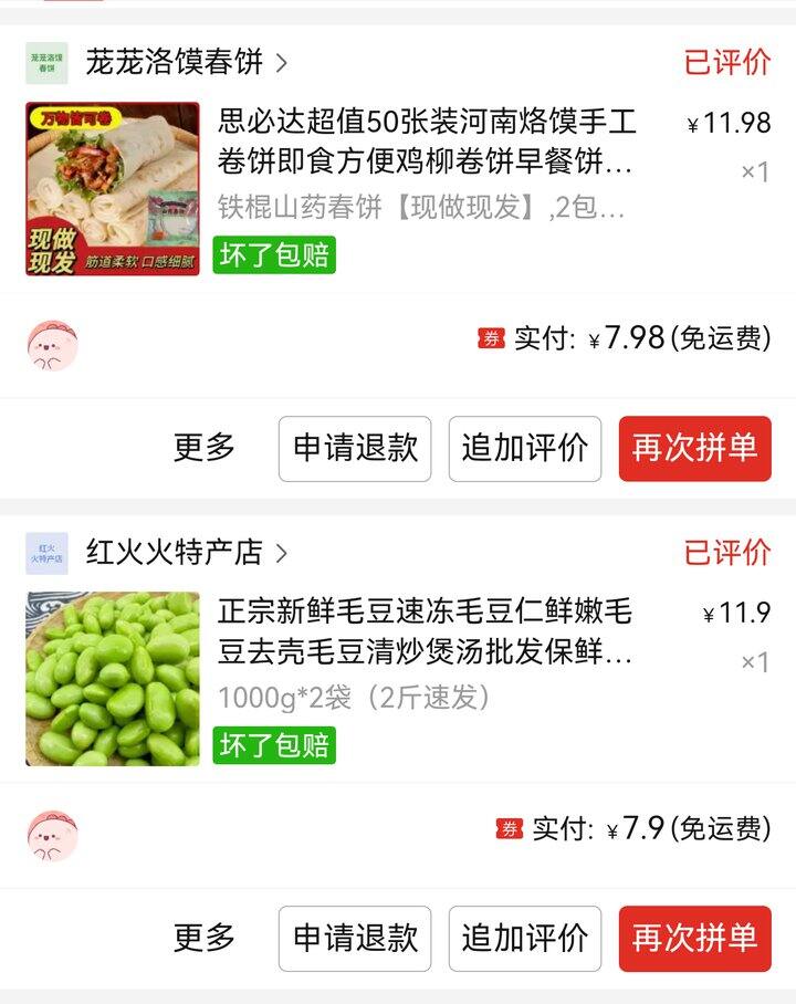 这个饼随便烤点肉,炒个鸡蛋,加点蔬菜什么的都挺好吃,但是包装太随意了,拿个快递费套着就寄来了,天气热肯定不行的毛豆很新鲜,价格也划算,两袋煮了四次