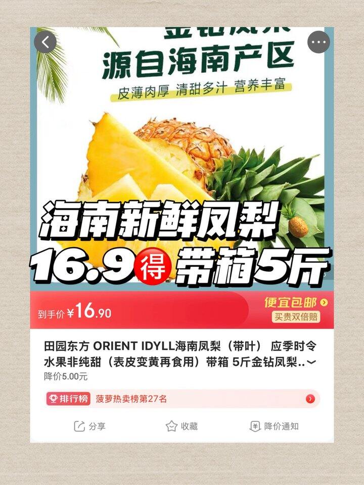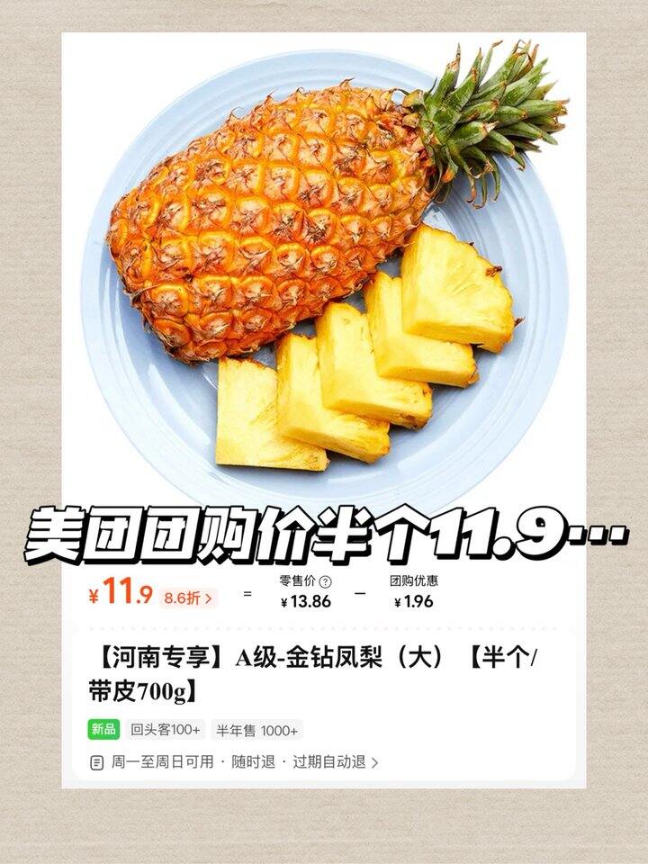 特别香甜可口!!全家人吃一口就让回购!!半个菠萝才101大卡 热量比苹果都低!!!