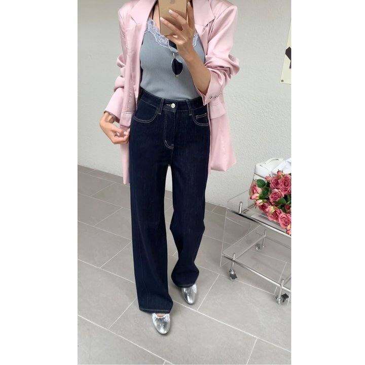 四面弹 直筒牛仔裤女 中高腰窄版弹力长裤 双线设计 三色可选