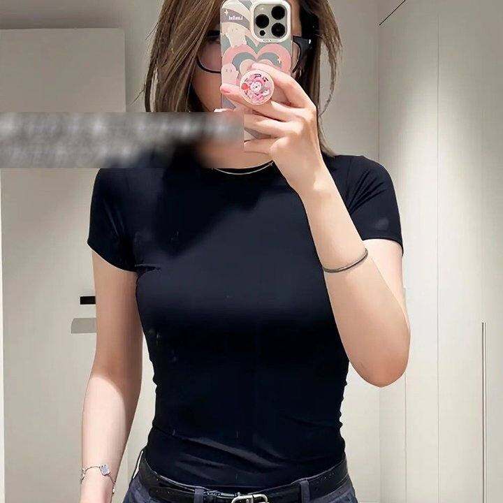 Moses Queen魔西女王polo正肩修身弹力显瘦春夏内搭圆领短袖T恤女