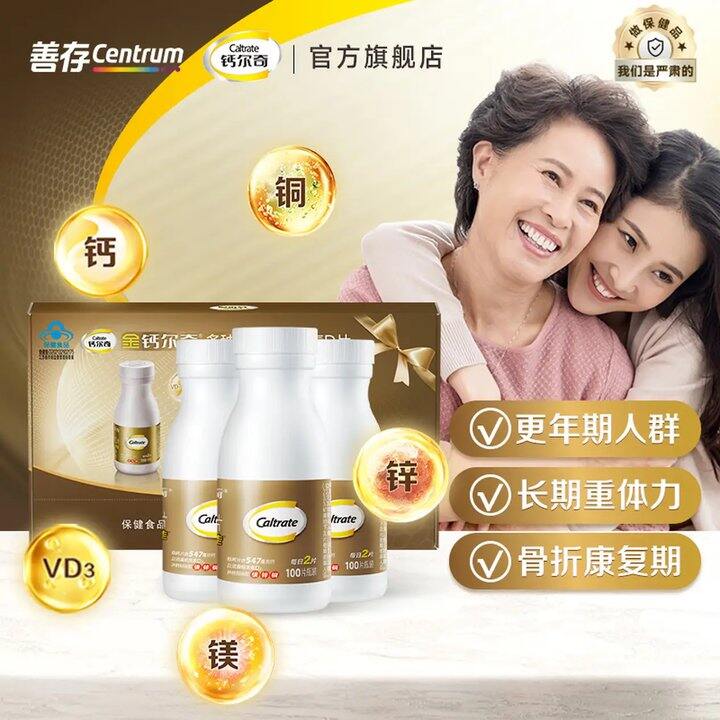 钙尔奇 钙片 VD3多种矿物质维生素D 成人添佳100片*3盒 礼盒装【137】
