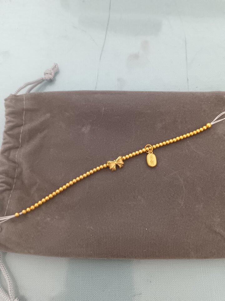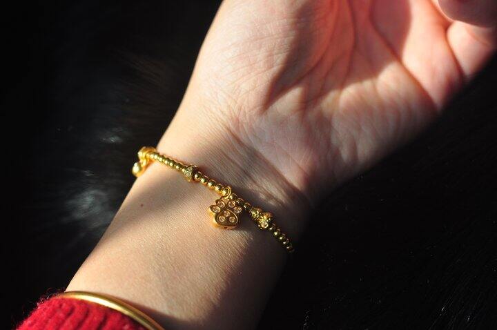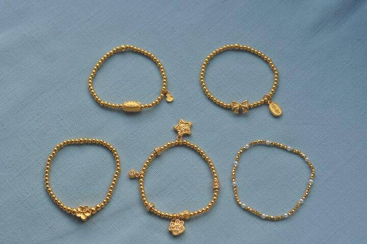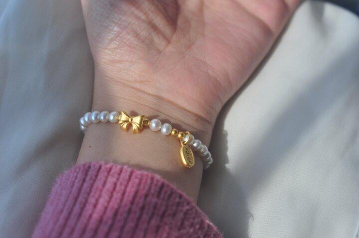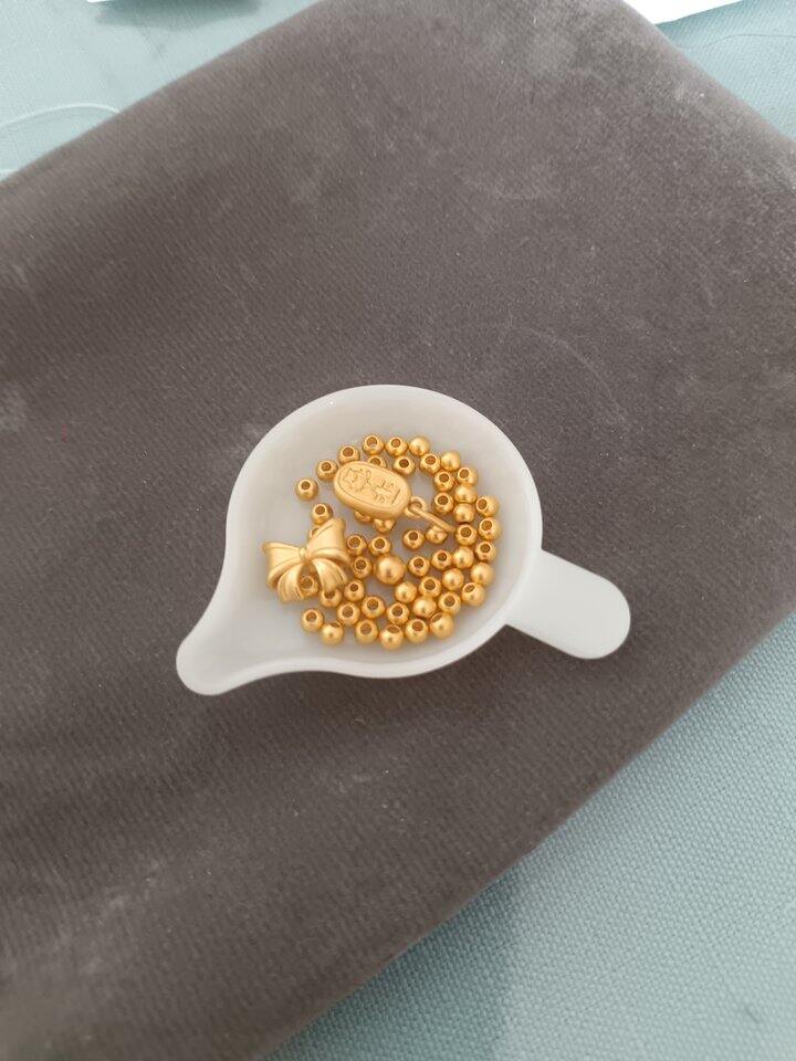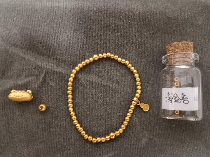 珍珠和金放在一起,金会变黑。这条手链串好后我没怎么戴过,但是感觉金珠有点变黑了。