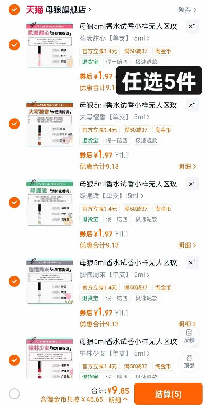 80款任选⑤件,母狼🐺香水小样5ml💰9.8