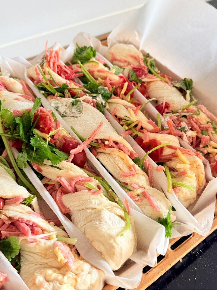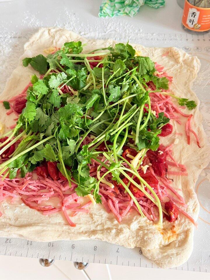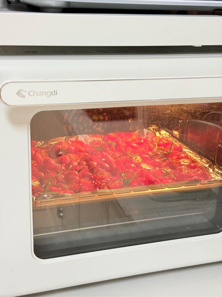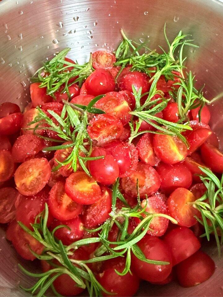 做了油浸小番茄,还做了加满了火腿油浸小番茄和香菜马苏里拉芝士的恰巴塔[鹿恶魔鹿]