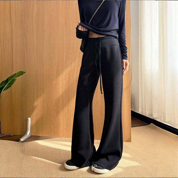 美拉德棕色微喇叭裤女2025秋冬垂感棕色云朵糯米裤高腰羊毛喇叭裤