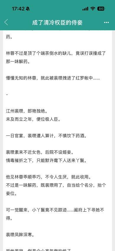 后来继续看下去才知道女主根本不喜欢男主,女主做的一切都是为了利用男主给家里翻案,ok看到这里我就舒服了。清醒不内耗不恋爱脑的女主我喜欢!