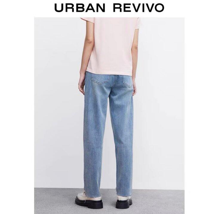 UR2022春夏新款女装古着休闲洗水磨白流苏牛仔
