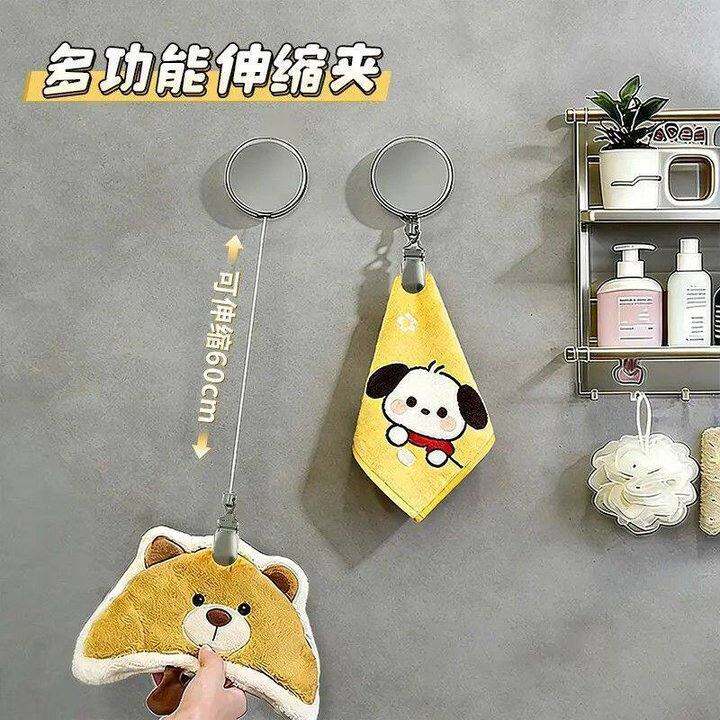 多功能伸缩夹厨房毛巾挂绳自动回弹伸缩挂钩免打孔浴巾固定挂钩