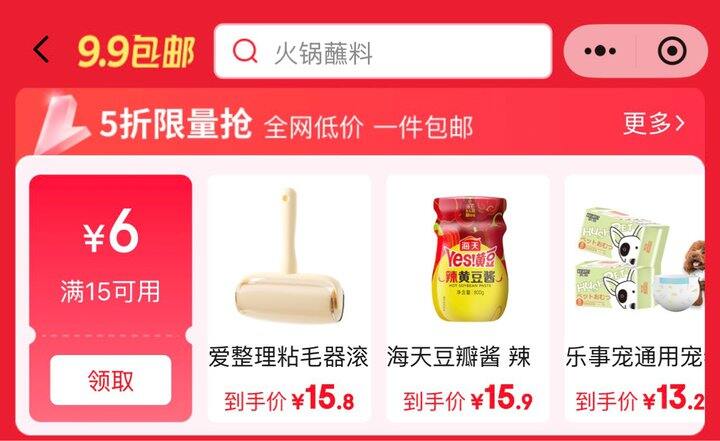 先去小程序首页-9.9包邮-如图领15-6券