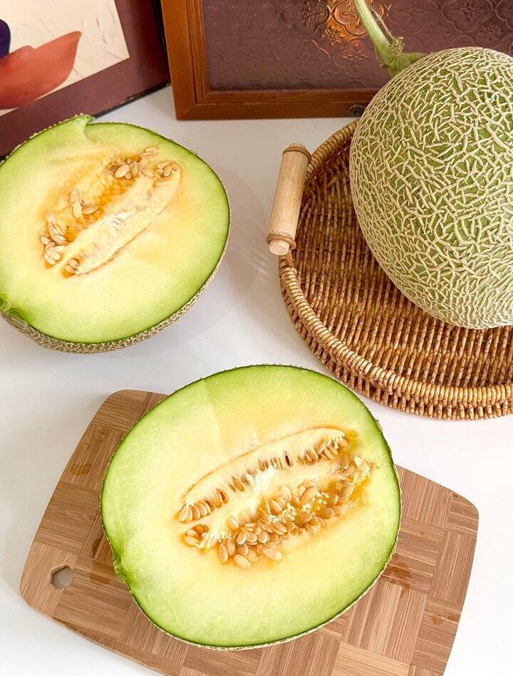一切开就能闻到馥郁清新的瓜香 果肉是那种晶莹剔透的翠绿色 厚实细腻不甜腻 用勺子挖着吃巨'爽无比!