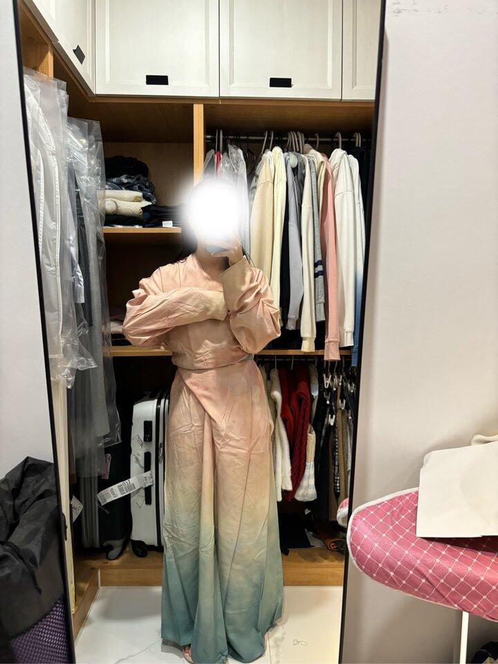 这件纠结了一年,最近还是买了。一共有两个绿色,一个是草绿色,一个是这个深绿色。亮色还是会更加出片,但是黄皮不合适草绿色,就买了这个深绿色。今年还出了一个新颜色,渐变粉。看直播间真的很上头,忍不住也买回来一起试。穿上后一秒下头.... 黄皮穿粉色真的好灾难。拉倒最后两张图是试穿无P的图。