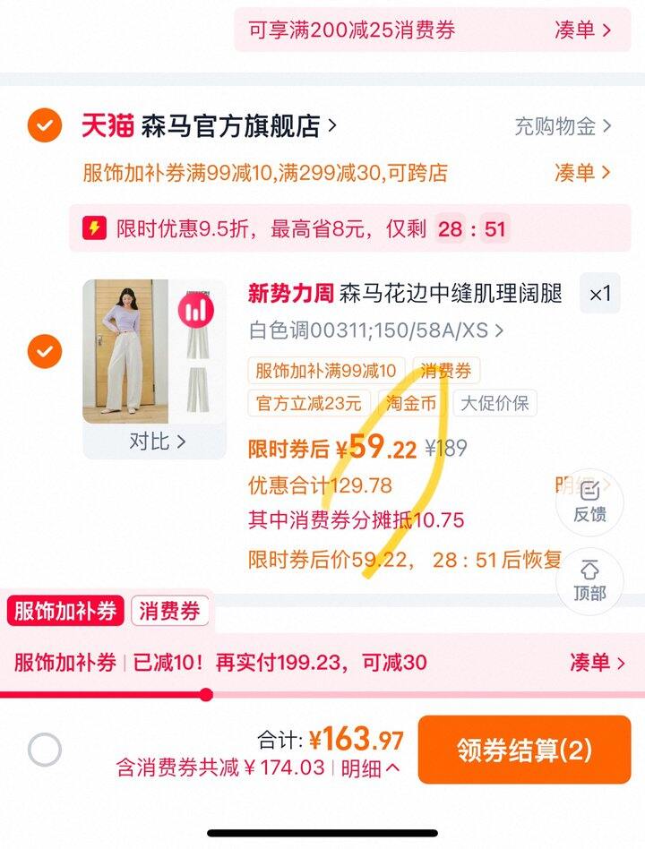 弹淘礼金。页面领99-10服饰券