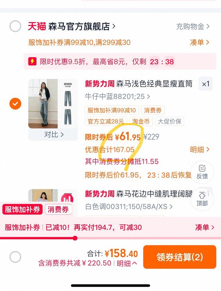 2️⃣👖到手61.95