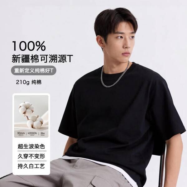 京东服饰100%新疆棉210g男女短袖T恤