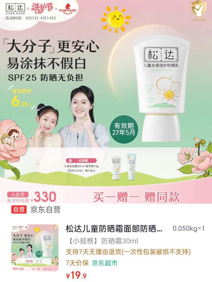 松达 儿童防晒霜