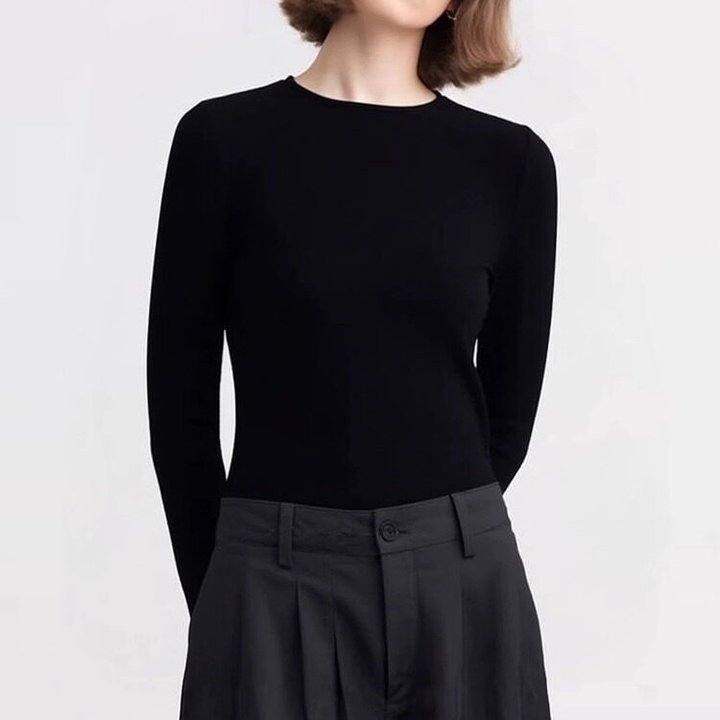 白GONG棉毛混纺秋季新款圆领长袖打底衫基础款通勤修身弹力T恤女