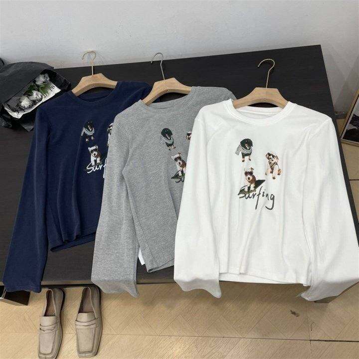 T恤上衣女春季新款女装圆领长袖打底上衣百搭宽松 C#3