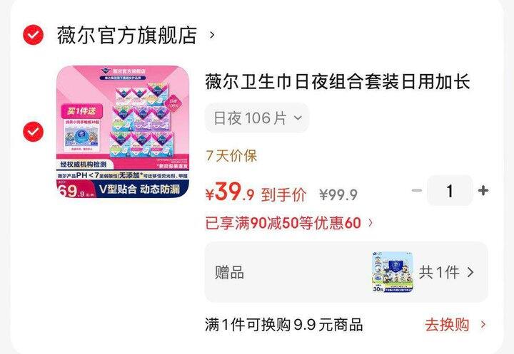 領.99-50https://3.cn/2Jgk-CK0薇尔卫生巾组合106 39.9💰