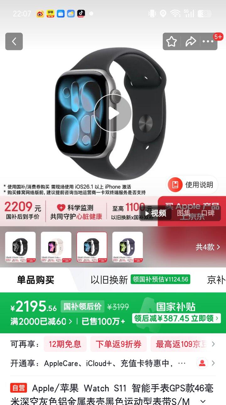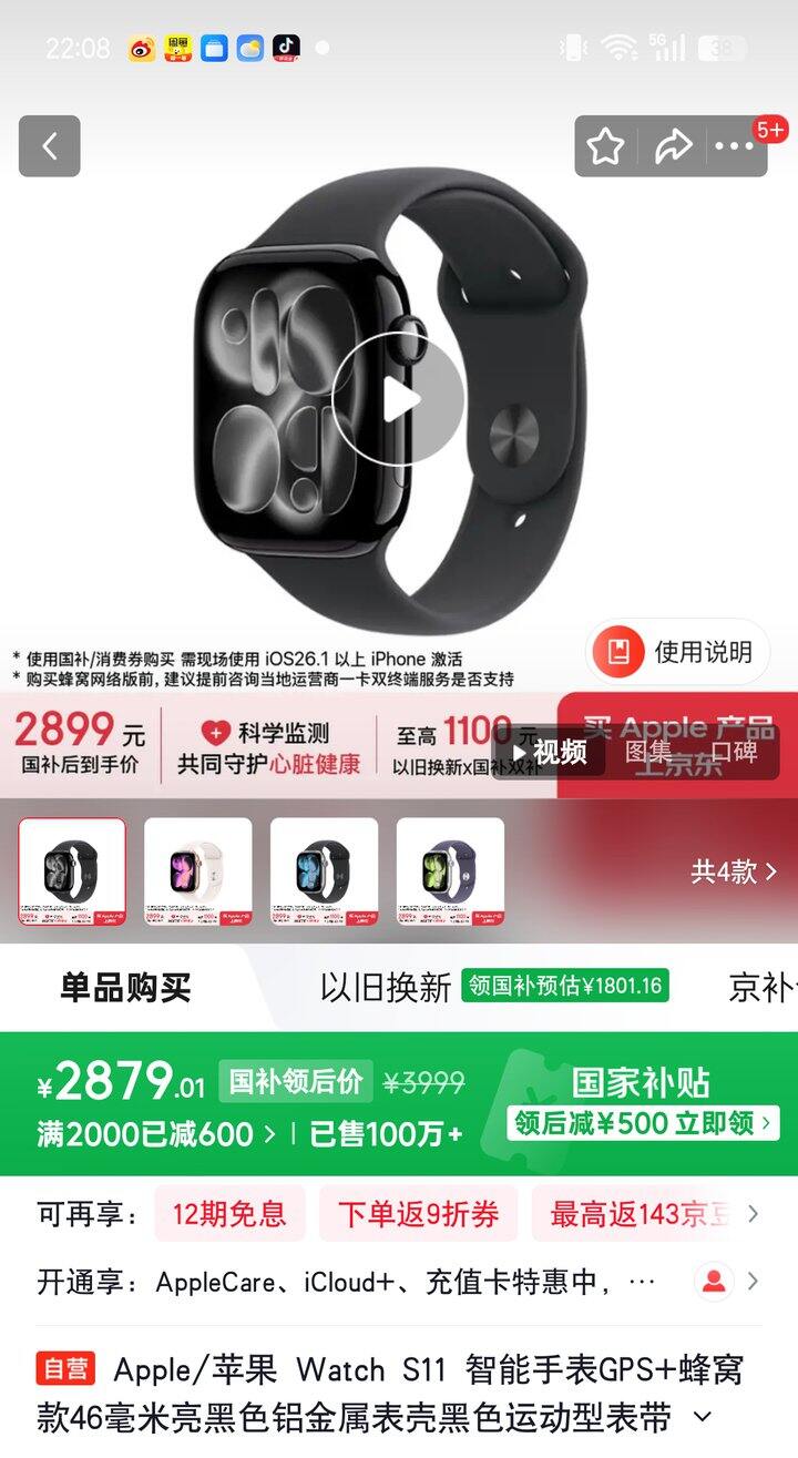 苹果S11 GPS+蜂窝46【2879】
