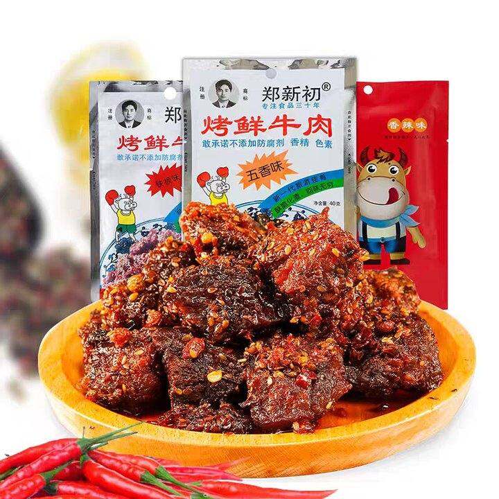 网红无添加郑新初烤鲜牛肉辣牛肉干粒香辣麻五香5包零食江西特产