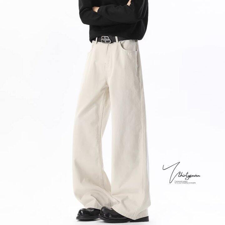 白裤子V37美式潮牌cleanfit米色阔腿裤https://s.click.taobao.com/V34s8jm