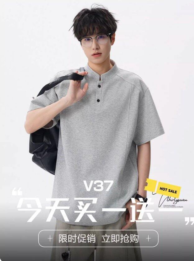V37美式高街潮牌亨利领短袖T恤https://s.click.taobao.com/qoFgdYm